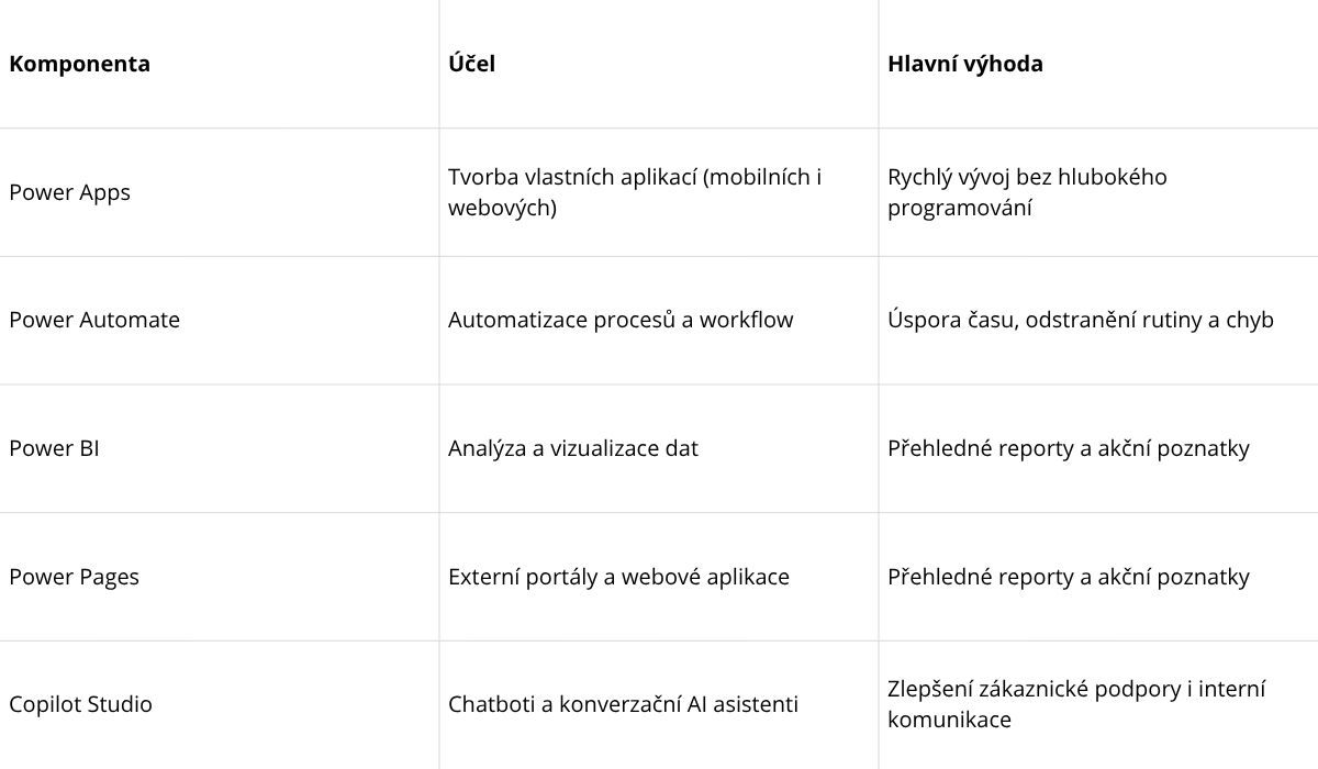 V dnešní době, kdy každá organizace zápasí s daty, procesy a rychlou adaptací, je klíčové mít nástroje, které nepotřebují měsíce vývoje, ale přinášejí hodnotu okamžitě. A právě zde přichází Microsoft Power Platform – sada low-code / no-code nástrojů, která proměňuje myšlenky v aplikace, automatizuje rutiny a přináší jasné datové insighty. Power Platform není pouhý technologický buzzword – je to překlenovací technologie mezi byznysem a IT, která dává moc i netechnickým uživatelům, ale zároveň poskytuje robustnost expertním vývojářům.