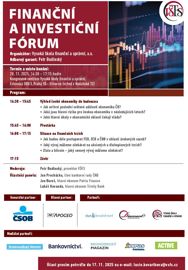 Rádi bychom vás pozvali na Finanční a Investiční fórum, které organizuje Vysoká škola finanční a správní a jehož jsme hlavním partnerem.