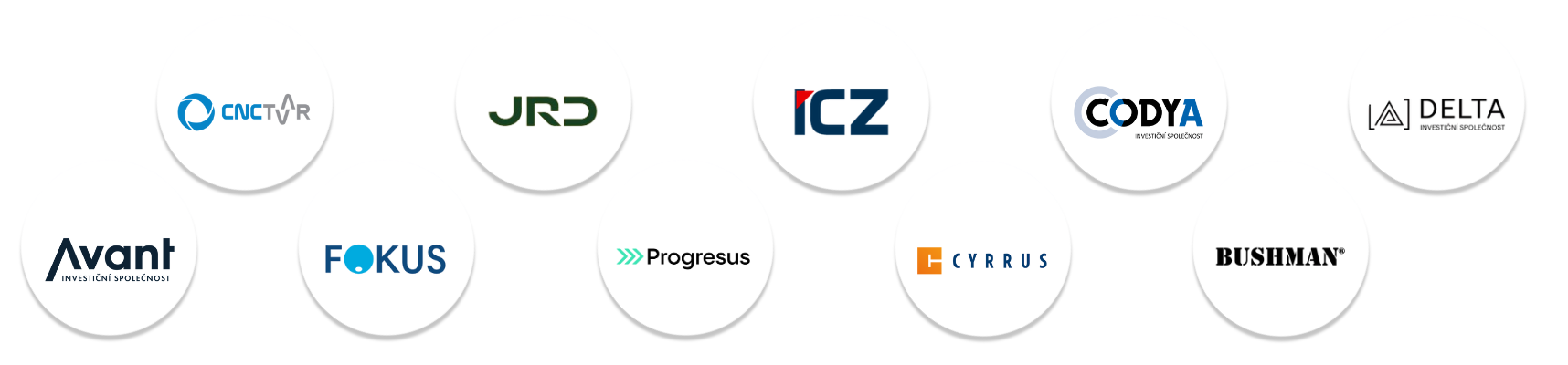 - Investiční společnosti AVANT, DELTA a CODYA, které obhospodařují a administrují fondy kvalifikovaných investorů,