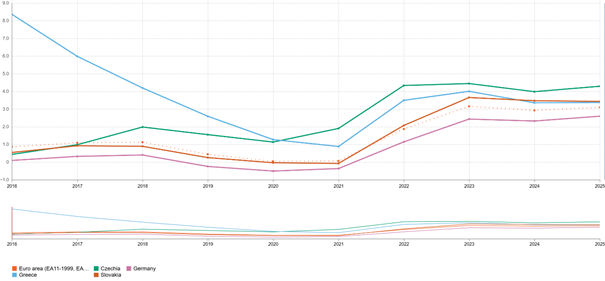 Až ponižující je srovnání s Řeckem, které po více než deseti letech tvrdé konsolidace veřejných financí (viz dluhová krize) dosahuje nižších nákladů na dluh než Slovensko, a tedy o více než procentní bod nižší náklady než Česká republika. Oproti průměru eurozóny jsme dražší o téměř jeden a půl procentního bodu.
