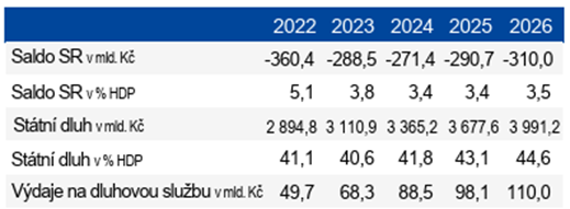 Zdroj: MF ČR: Exekutivní shrnutí státního rozpočtu pro rok 2026, https://mf.gov.cz/cs/rozpoctova-politika/statni-rozpocet/rychla-shrnuti-statniho-rozpoctu/exekutivni-shrnuti-statniho-rozpoctu-pro-rok-2026-63589