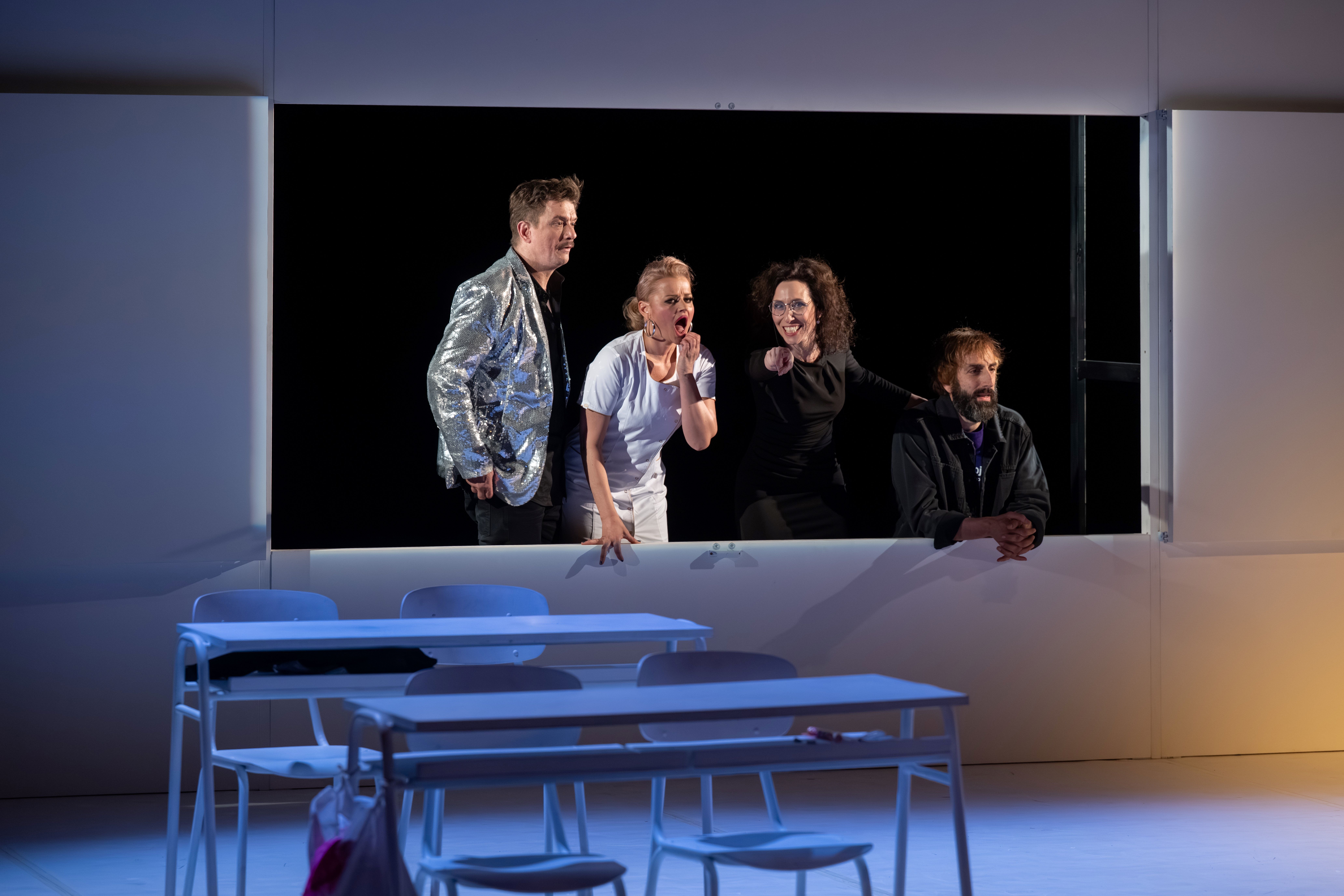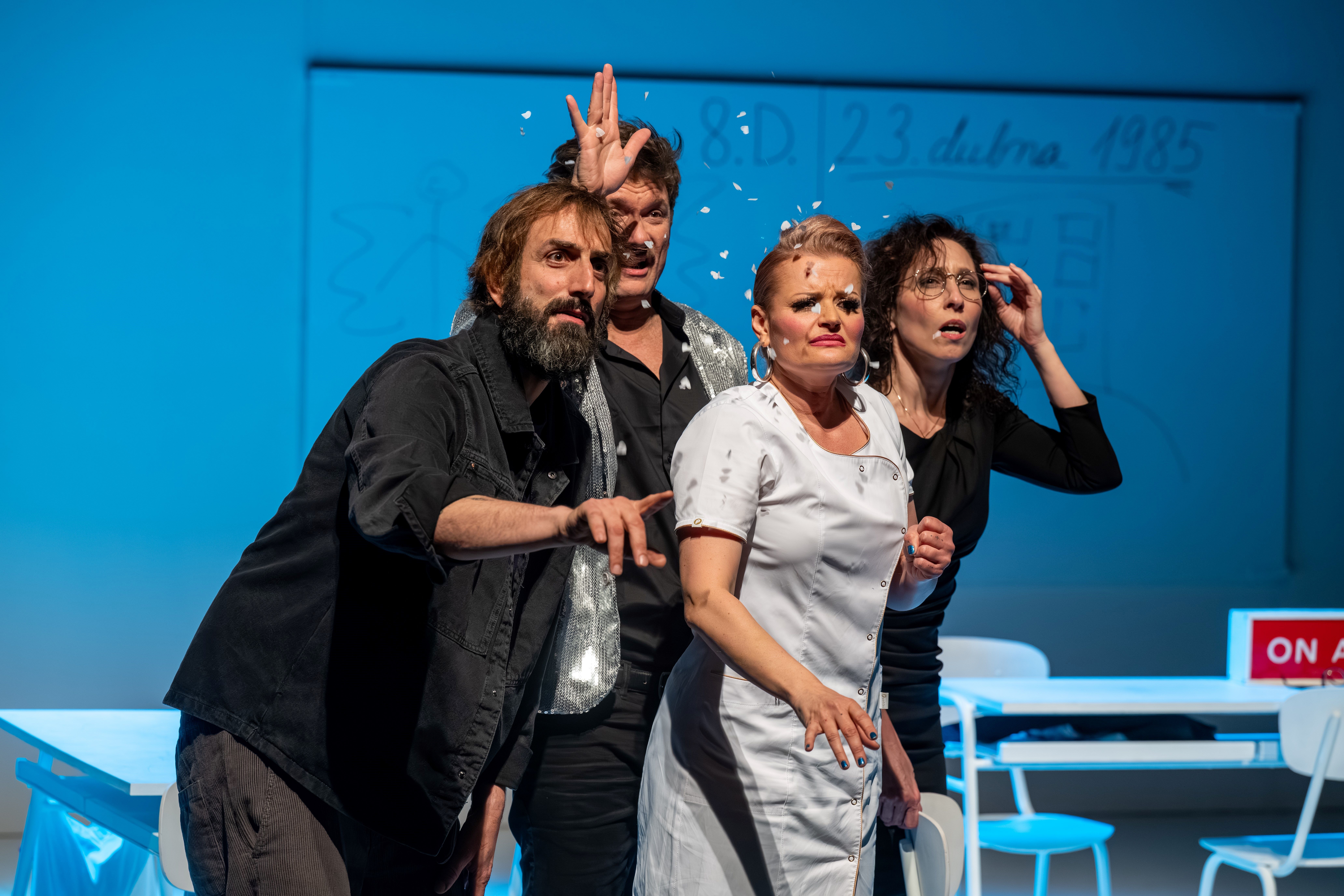 Inscenace autora a režiséra Tomáše Svobody sleduje příběh čtyř spolužáků z generace „Husákových dětí“, kteří se po letech znovu setkávají s minulostí, kterou v sobě nikdy úplně neuzavřeli. Školní třída z roku 1986, obraz Gustáva Husáka na zdi, paneláky, malé i velké křivdy, první touhy i absurdita tehdejší doby vytvářejí kulisu pro černou komedii plnou nadsázky, krutého humoru i nečekaných momentů.
