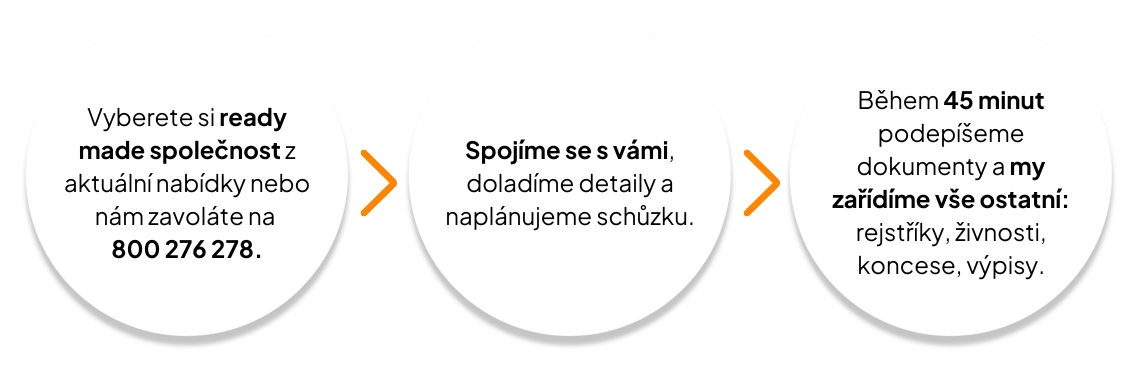 Hlavní výhodou ready made společností je jejich okamžitá dostupnost, jednoduchost celého procesu a pohodlí, které nabízí. My se postaráme o profesionální nastavení celé firmy – na míru a bez zdržení.